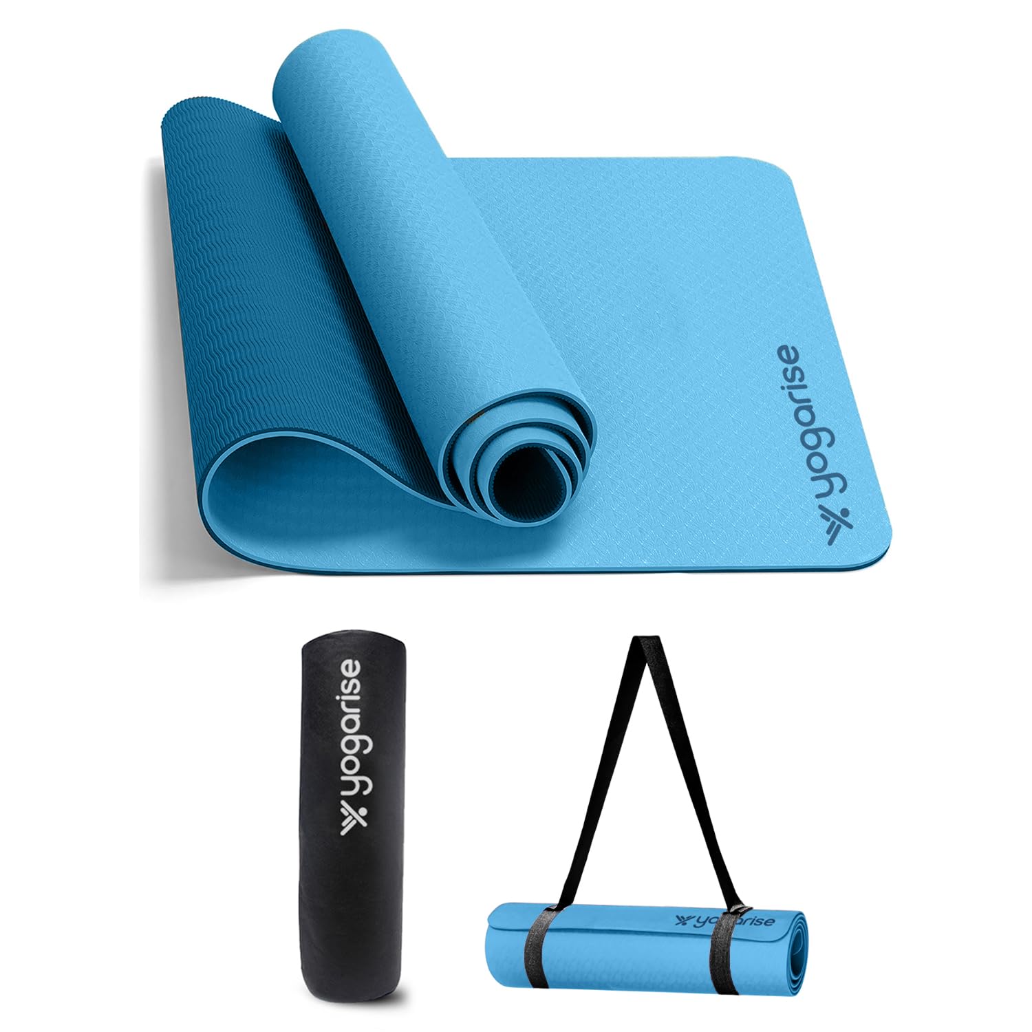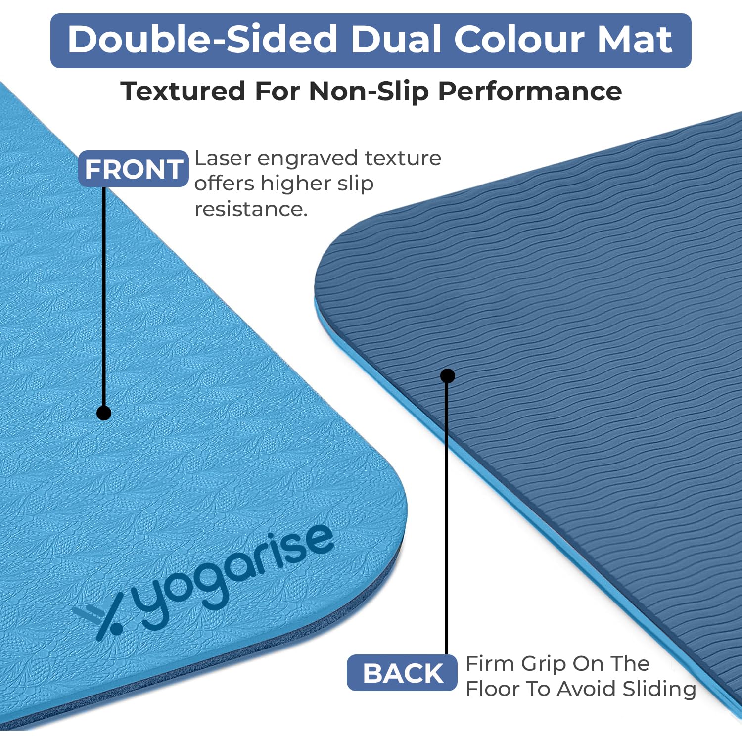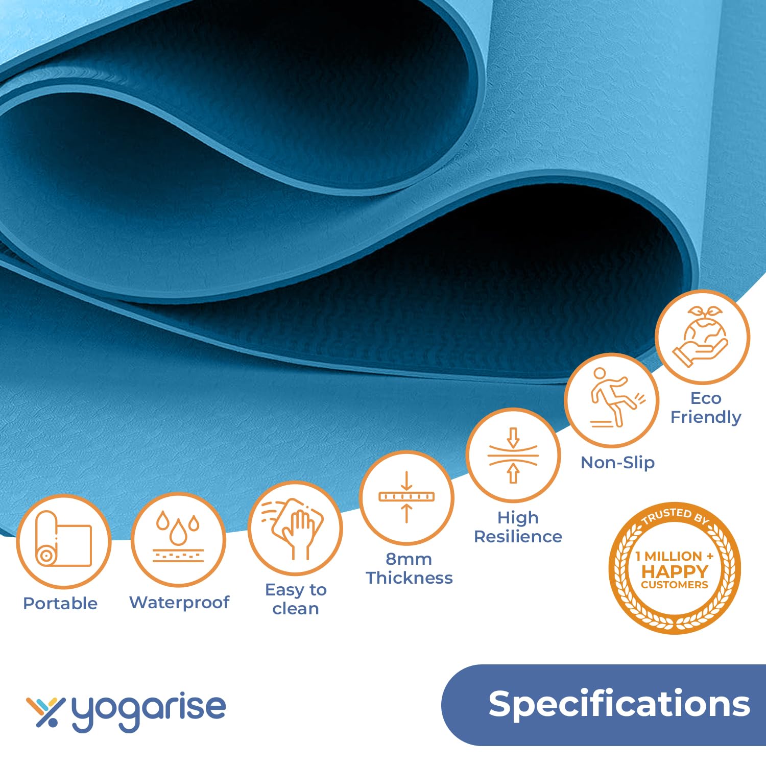 Yogarise 8mm Yoga Mat, Yoga Mat for Women and Men, Premium TPE Material Extra Thick Exercise Yoga Mat for Workout, Yoga, Fitness, Exercise Mat Anti Slip Mat, Yoga Mat Gym Mat (Light & Dark Blue)