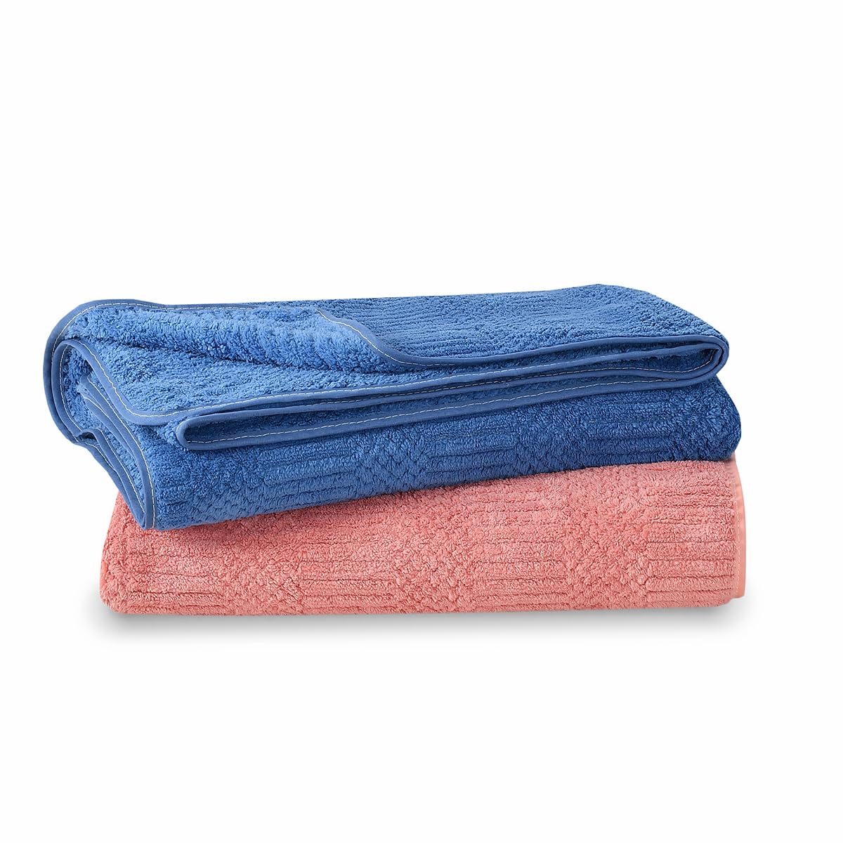 MATERIAL AND SIZE – 100% Microfiber, 70 x 140 CM.Color – Blue & Coral