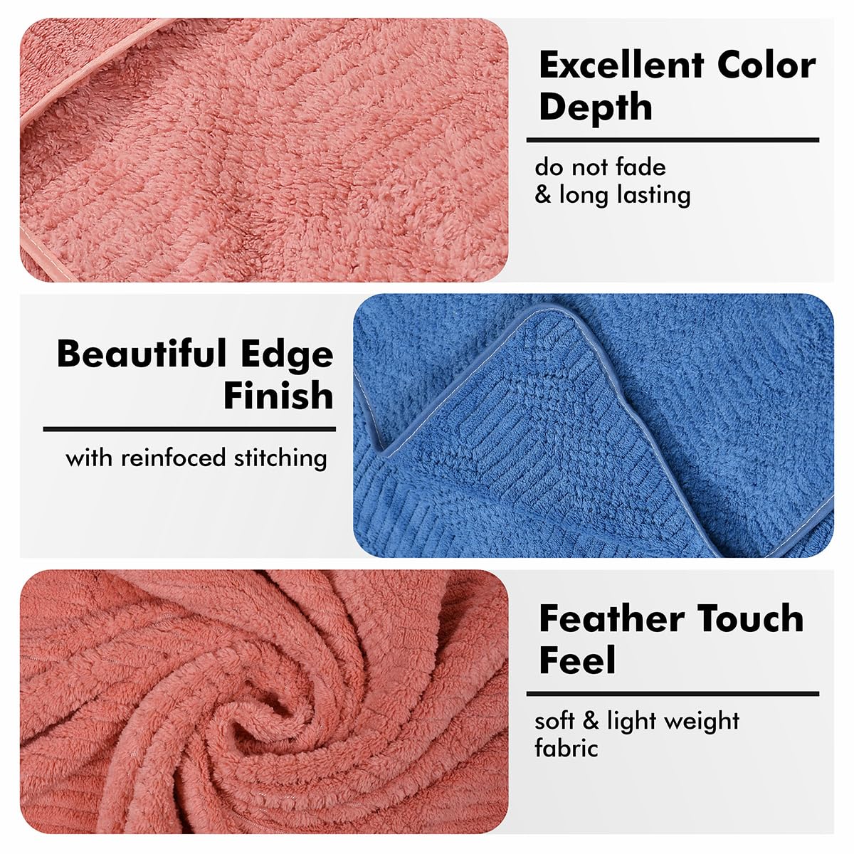 FEATHER TOUCH FEEL- Experience the super soft feeling of premium microfiber bath towels against your skin without the heft and bulk; unlike traditional towels these are very light weight.
